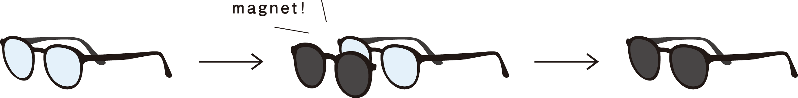 Easily switch between glasses and sunglasses by attaching and detaching the magnetic plate