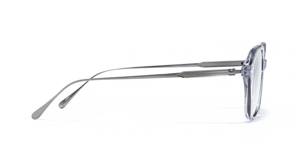 A fusion of acetate and metal. Beta titanium temples create a design that balances substantial presence with exceptional comfort.