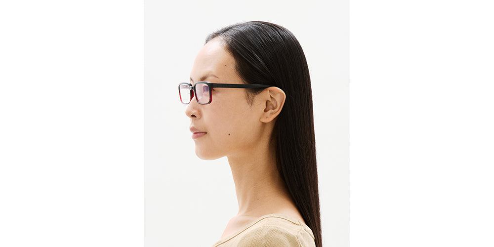 The temples are slim and gently curved to follow the shape of your head, allowing the frame to rest softly against your face even when lying down.
